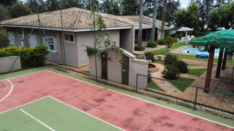 A casa conta com uma quadra oficial de tênis e futebol de salão, jardim com árvores frutíferas em produção e horta completa, além de uma casinha de boneca encantadora.